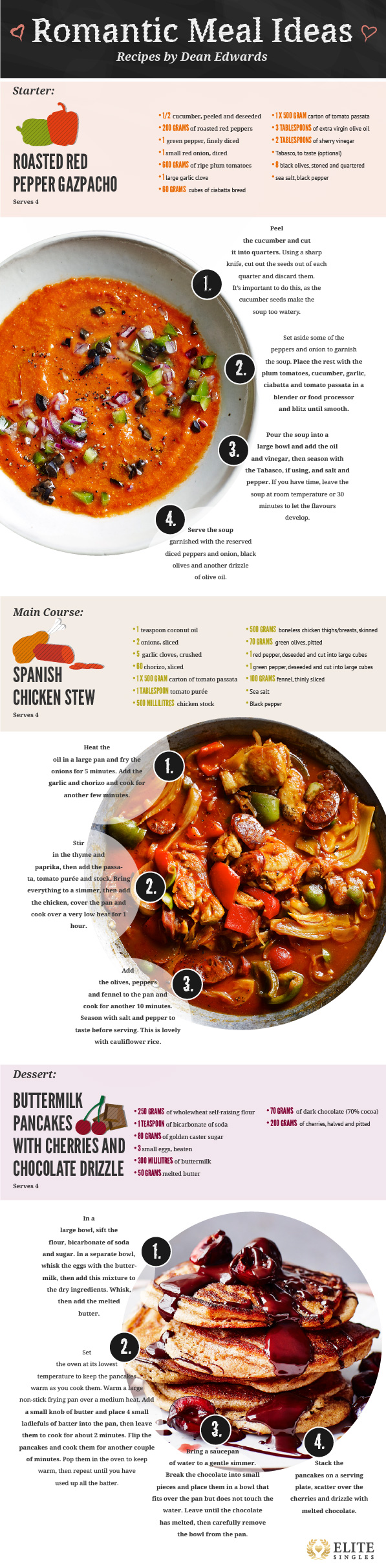 We all love going out to dinner, but there are few gestures more romantic and fool-proof than preparing and cooking a meal for that special someone. The effort involved in pulling off a romantic three-course meal might be difficult, but it’s sure to impress, and with just the two of you involved it is a much more intimate occasion — so get lighting those candles.